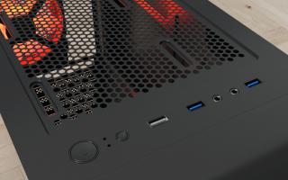 Puertos de audio y datos en el panel superior: 2 puertos USB 2.1, 1 puerto USB 3.0 y 1 audio HD